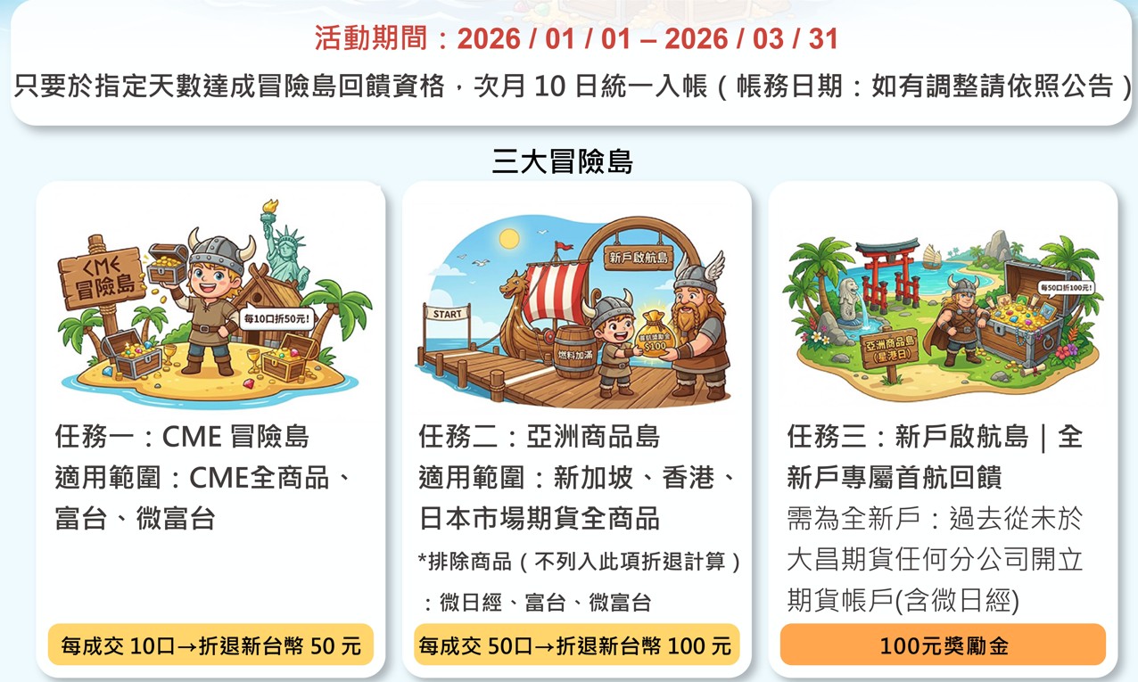 任務二:交易亞洲市場全商品(除了微日經、富台、微富台外)→每50口退台幣100元